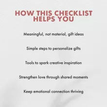 This checklist is for anyone who wants to go beyond store-bought presents and create gifts that truly resonate. It’s perfect for those searching for inspiration, needing practical guidance, or wanting to express love in a deeper way using tips for meaningful gifts for a partner.