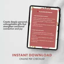 Finding the perfect gift for your partner doesn’t have to be stressful—it can be heartfelt, easy, and unforgettable. The Heartfelt Gift Blueprint is a beautifully designed digital checklist created to help you craft thoughtful, personalized gifts that speak directly to your partner’s heart. Whether it’s for an anniversary, birthday, or “just because” moment, this digital download guides you step-by-step through understanding what matters most and turning it into a memorable experience. Filled with practical ideas, emotional insights, and modern tools, this checklist helps you master the art of meaningful giving.
