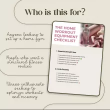 Transform your fitness journey with our comprehensive digital download, The Home Workout Equipment Checklist. Whether you’re a seasoned athlete or a fitness newbie, this checklist is your ultimate guide to building a fully equipped home gym that fits your needs. No more guesswork—this guide offers clear recommendations on the essential gear, cardio boosters, flexibility tools, and more, so you can take your fitness to the next level. From strength training to recovery, we’ve got you covered with everything you need to crush your workouts at home!