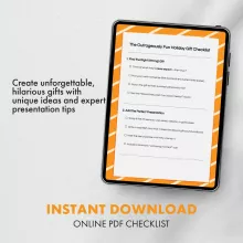 Looking to spice up the holiday season with gifts that no one will see coming? The Outrageously Fun Holiday Gift Checklist is your ultimate guide to giving the most ridiculous holiday gifts that will have everyone laughing and sharing their reactions for years to come. This digital checklist is packed with ideas, tips, and techniques to ensure your gifts are both wildly unexpected and delightfully entertaining. Say goodbye to boring and predictable presents—get ready to surprise your loved ones with gifts that are both hilarious and memorable!
