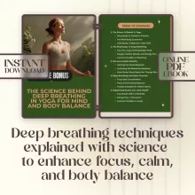 Discover the science behind deep breathing in yoga and how it can transform your daily life. This beautifully designed eBook guides you step by step through the physiology, mental benefits, and practical applications of deep breathing for improved focus, stress relief, flexibility, and emotional balance. Whether you’re a beginner seeking calm or an experienced yogi looking to deepen your practice, this resource blends scientific insights with practical tools for lasting wellness.