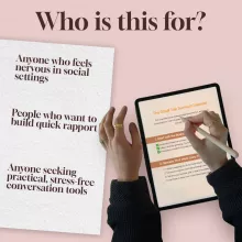 Do you ever freeze up in social situations, unsure of what to say next? The Small Talk Survival Checklist is your go-to digital download designed to help you confidently start, sustain, and enjoy conversations—whether at networking events, parties, or casual meetups. Packed with ready-to-use small talk questions, practical conversation tips, and lighthearted prompts, this easy-to-follow checklist takes the stress out of socializing and makes connecting with others feel natural and fun.