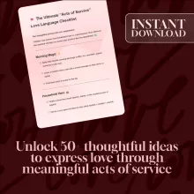 Don’t wait to show your love in a way that resonates. The Ultimate “Acts of Service” Love Language Checklist is ready for instant download, so you can start making meaningful gestures today. Whether you’re planning a surprise, helping with everyday tasks, or just showing you care, this guide will help you express your love in powerful, thoughtful ways. Click the button to get your checklist now and start spreading love through acts of service!