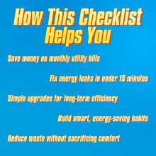 This easy-to-follow checklist walks you through everything from quick DIY fixes to smart upgrades and long-term habits. Whether you’re renting an apartment, owning your first home, or simply looking to live more efficiently, this resource is packed with practical, actionable advice you can start using today.
