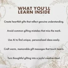 - Chapter 4: Making a Lasting Impression Beyond the Gift — Tips for thoughtful presentation, showing gratitude, and continuing meaningful connections.