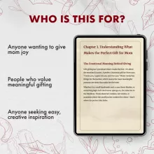 - Chapter 1: Understanding What Makes the Perfect Gift for Mom – Learn the emotional meaning behind giving, how to interpret her subtle hints, and avoid common gift mistakes.
