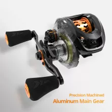 Engineered with a focus on lightweight durability and smooth operation, this baitcasting reel boasts cutting-edge technology. The combination of carbon fiber construction and precision-machined aluminum gears ensures strength without added weight. With a blazing 7.2:1 gear ratio and 6 + 1 double-shielded stainless steel ball bearings, the reel delivers smooth, efficient performance for casting lightweight baits with precision.