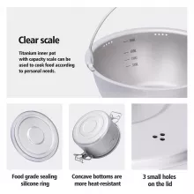 - Pressure-sealed lid – Cooks food faster while preserving taste and nutrients
