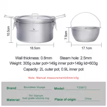 Take your outdoor cooking to the next level with this ultralight 2L titanium pressure cooker, specially designed for adventurers who don’t want to compromise on flavor. Whether you’re preparing rice, stews, or tender meat dishes under the open sky, this multifunctional cookware helps you enjoy hearty meals far from home. Designed for camping, hiking, backpacking, or even minimalist travel, this pot is ideal for solo travelers, couples, and small groups of up to four people.