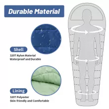 Made with durable terylene fabric and soft cotton filling, this 3-season sleeping bag is built to handle cool nights from spring through autumn. With a comfortable temperature range of 41°F to 32°F, it’s the ideal choice for unpredictable weather in the great outdoors. The waterproof outer shell keeps you dry, while the breathable material ensures comfort without overheating.