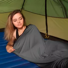 Don’t settle for rough nights or dirty sheets — add comfort and cleanliness to every trip with this versatile sleeping bag liner.