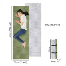 Crafted with high-quality XPE foam and an aluminum foil layer, this mat reflects body heat to keep you warm on cool ground while providing a cushioned, moisture-resistant surface. It opens to a generous size of 72.8 x 22 x 0.7 inches, giving you full-body support, and folds down neatly to just 22 x 5.1 x 5.9 inches for easy carrying. Weighing in at only 14.8 ounces, it adds minimal bulk to your pack—making it ideal for long-distance hiking or lightweight camping setups.