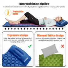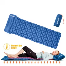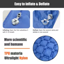 Enjoy restful sleep under the stars with this ultralight inflatable camping sleeping pad with a built-in pillow. Designed for adventurers who value comfort, portability, and performance, this compact air mattress offers a perfect night’s rest on any terrain. Whether you’re camping deep in the woods, hiking rugged trails, backpacking through national parks, or simply relaxing at the beach, this pad ensures you’re supported, insulated, and relaxed.