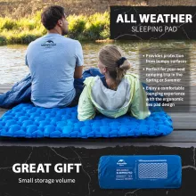 Turn the great outdoors into your personal bedroom with this ultralight inflatable sleeping pad. Designed for adventurers who value both comfort and packability, this air cushion sleeping mat brings cozy, home-like rest to even the most rugged trails. Whether you’re backpacking through mountains, setting up camp by a lake, or traveling cross-country, this mat is your go-to solution for restful sleep under the stars.