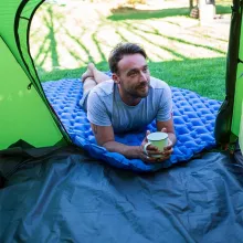 Built with premium TPU nylon, the mat is tough, waterproof, and damp-proof—perfect for resisting the moisture and rough terrain that comes with outdoor adventures. With an easy-to-use external inflator pump design, it sets up in minutes so you can relax faster after a long day of exploring.