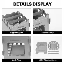 What truly sets this stove apart is its **smart balance of strength and weight**. While incredibly light, its split structure provides excellent stability for cookware. The titanium body is not only strong and durable but also resists corrosion and high heat, making it a long-lasting tool in your outdoor kit. Its folding design saves space without sacrificing functionality, letting you cook with real firewood wherever adventure takes you.