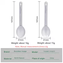 Each utensil is made from 99.8% pure titanium, ensuring exceptional strength, resistance to rust and corrosion, and absolute food safety. Despite its strength, the spoon weighs just 0.56 oz and the spork just 0.53 oz — making them featherlight additions to your gear. Measuring approximately 6.6 inches in length and 1.6 inches wide, they’re easy to handle while being compact enough to slip into your backpack or pocket. A sleek drawstring storage bag is included for effortless organization and cleanliness on the go.