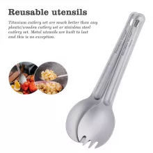 This set is not just for outdoor lovers — it’s for anyone who values practicality, sustainability, and style. Unlike plastic or disposable options, this titanium spoon and spork won’t snap, bend, or leach chemicals into your food. Use it at the campsite, during long treks, in your emergency kit, or even at work for an eco-friendly lunch solution.