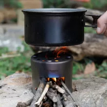 Unlike bulky camp stoves, this titanium wood burner offers unmatched portability without sacrificing performance. Its split structure makes assembly a breeze, while the efficient airflow system ensures your fire stays lit and burns hotter with less smoke. It’s perfect for preparing meals for one or two people and keeps your pack light while still delivering powerful cooking capabilities. It’s also a more sustainable option — just gather some natural fuel around your campsite and you’re ready to cook.