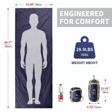 This sleeping bag is designed to be your reliable companion for spring and fall camping trips where lightweight and breathability matter. Its unique blend of cotton filling and waterproof fabric keeps you cozy without overheating or getting damp. Whether you’re hiking through the wilderness or enjoying a weekend campout, this sleeping bag delivers comfort, protection, and ease of use.