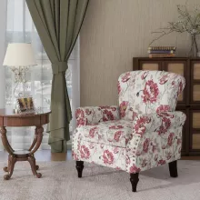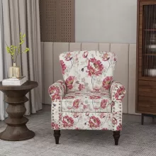 Bring timeless charm and cozy sophistication into your home with this Upholstered High Back Floral Wingback Armchair. Designed to make a statement, this armchair combines refined craftsmanship with plush comfort, creating the perfect seat for reading, relaxing, or simply enjoying a quiet moment. Its elegant floral upholstery adds a touch of botanical beauty, while the classic wingback silhouette and nailhead trim give it a vintage-inspired appeal that fits effortlessly into both modern and traditional interiors.