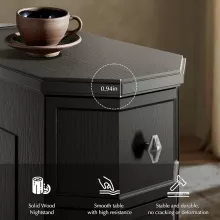 Built from premium solid wood, this nightstand is crafted to last. The sturdy construction resists scratches and supports up to 441 lbs, ensuring stability for your lamp, décor, or nighttime essentials. With a rich black finish, it seamlessly blends into your space while standing out for its refined craftsmanship.