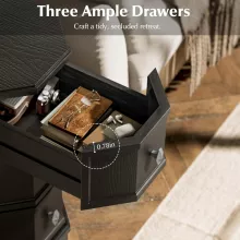 Featuring built-in Type-C and USB ports, this bedside table makes charging your devices easier than ever. Keep your phone, tablet, or e-reader powered up without cluttering your room with tangled cords. Three smooth-gliding drawers offer plenty of storage for books, accessories, or daily must-haves—keeping your space neat and organized.
