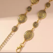Choosing our Vintage Oval Craved Metal Waist Chain means enjoying a blend of elegance and practicality: