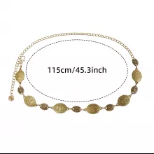 The waist chain measures 45.3 inches (115 cm) in length, offering versatility in styling. Wear it over your favorite dress to accentuate your waist, or pair it with high-waisted jeans for a chic, stylish effect. The stunning gold color shines beautifully in any light, making this chain a standout accessory that draws attention. Its lightweight design ensures you can wear it comfortably throughout the day without any hassle.