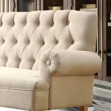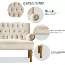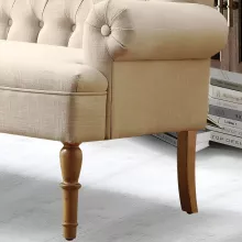The charm of this loveseat lies in its perfect balance of timeless design and quality craftsmanship. The elegant tufted buttons on the backrest and the classic roll arms create a sophisticated look that works with any decor style. What truly sets it apart is the combination of premium materials—the soft linen-like fabric feels luxurious against your skin, while the solid wood frame provides exceptional durability. It’s a piece that looks beautiful in your space while being built to last through years of comfortable use.