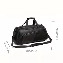 Crafted from high-quality, soft PU material, this duffel bag boasts a durable build that resists water, protecting your belongings rain or shine. With a spacious main compartment, wet and dry separation pocket, and a practical side shoe compartment, this bag ensures everything you need is easily accessible and neatly stored.