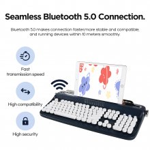 This keyboard isn’t just about looks; it’s about functionality and ease of use. Its full-sized layout is perfect for anyone who needs a reliable, high-performance keyboard for work or play. Whether you’re typing up documents, chatting with friends, or managing multiple devices at once, this keyboard does it all. Plus, the retro typewriter feel adds a dash of vintage charm to any environment.