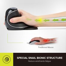 This mouse doesn’t just perform well—it puts your health first. The vertical design mimics a natural handshake, while the snail bionic shape adds both stability and style. With its smooth operation, customizable DPI, and multi-device pairing, it delivers an advanced user experience tailored for comfort and control.