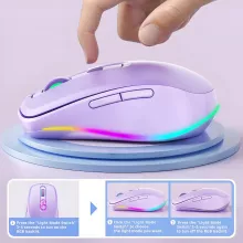 Unlike standard mice, this device features a discreet jiggler mode activated by holding the scroll wheel for a few seconds — perfect for preventing your computer from locking during presentations, downloads, or remote work sessions. The dual receiver design means it works effortlessly with all your devices, whether it’s a MacBook, Windows laptop, or iPad with USB-C connection. Plus, the customizable RGB lighting adds a personal touch to your workspace. The mouse can even be used while charging, so your workflow is never interrupted.