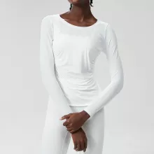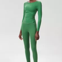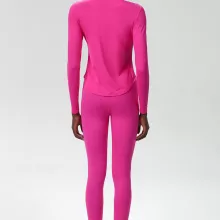 This set includes a long sleeve crop top and matching high-waisted leggings — both crafted with a sleek, minimalist design and a solid color finish for a modern athletic look. With four-way stretch and excellent recovery, the fabric holds shape while allowing total freedom of movement. Plus, it’s anti-pilling, anti-shrink, and resists wrinkles, so it always looks fresh, no matter how hard you go.