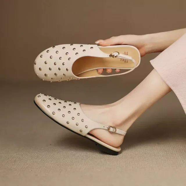 Say hello to your new go-to sandals for the sunny season. These Women’s Genuine Leather Rivet Summer Sandals are crafted for comfort, durability, and standout style. With a chic round toe, sleek silhouette, and modern rivet detailing, these sandals blend classic elegance with a touch of edge — perfect for elevating your everyday look. Whether you’re strolling through the city or enjoying a weekend brunch, these low-heeled flats offer all-day ease without sacrificing fashion.