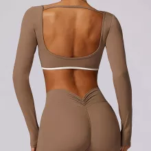 The hollowing-out detail isn’t just for style—it also enhances airflow where you need it most. Combined with a four-way stretch fabric, this top adapts to your body’s movement, offering unrestricted motion and a second-skin feel. The long sleeves and cropped hem strike the perfect balance of coverage and breathability, giving you confidence with every move.