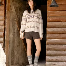 This retro Fair Isle cardigan isn’t just a piece of clothing—it’s a statement of comfort and personality. Pair it with jeans, leggings, or even a cozy skirt to create endless looks that are effortlessly stylish. Lightweight yet warm, it’s ideal for layering in the crisp autumn air or during winter festivities. Its soft knit, playful pattern, and flattering design make it a wardrobe essential for every woman seeking a blend of comfort, style, and versatility.