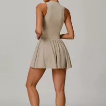 As a fitness enthusiast who values both style and comfort, this jumpsuit with tennis skirt has been a fantastic find! The sleeveless design is perfect for intense workout sessions, while the attached skirt adds an element of chicness. The zipper feature makes it incredibly easy to wear. Despite numerous washes, the fabric retains its quality impressively well. It's comfortable, stylish and practical - everything I look for in my workout gear!