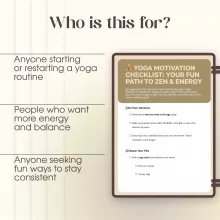 Struggling with how to get motivated to do yoga? The Yoga Motivation Checklist: Your Fun Path to Zen & Energy is here to spark your practice with simple, joyful steps. This digital download makes staying consistent easy and fun, whether you’re a beginner or already practicing but need that extra push. With practical hacks, lighthearted tips, and motivation boosters, this checklist helps you turn yoga into a habit you’ll actually look forward to.