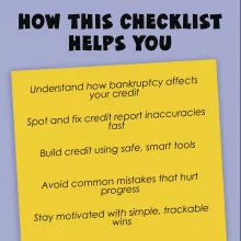 This checklist is ideal for anyone navigating the path to financial recovery and asking how to build credit after bankruptcy. Whether you’re recently discharged or several months in, this tool simplifies the process so you don’t feel overwhelmed.